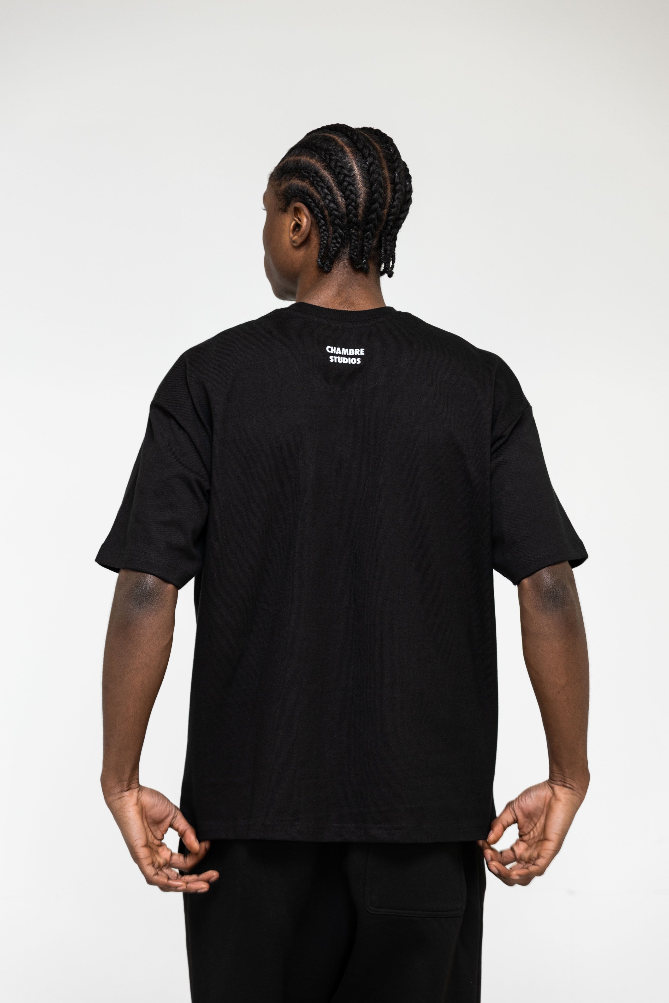 A 330GSM heavyweight black tee with a high-quality double-pressed screen print logo. Built for shape retention, comfort and timeless everyday wear.